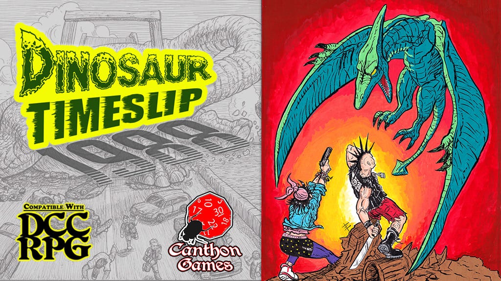 A 0-level dinosaur-apocalypse adventure for Dungeon Crawl Classics tabletop RPG set in New Jersey in the 1980s