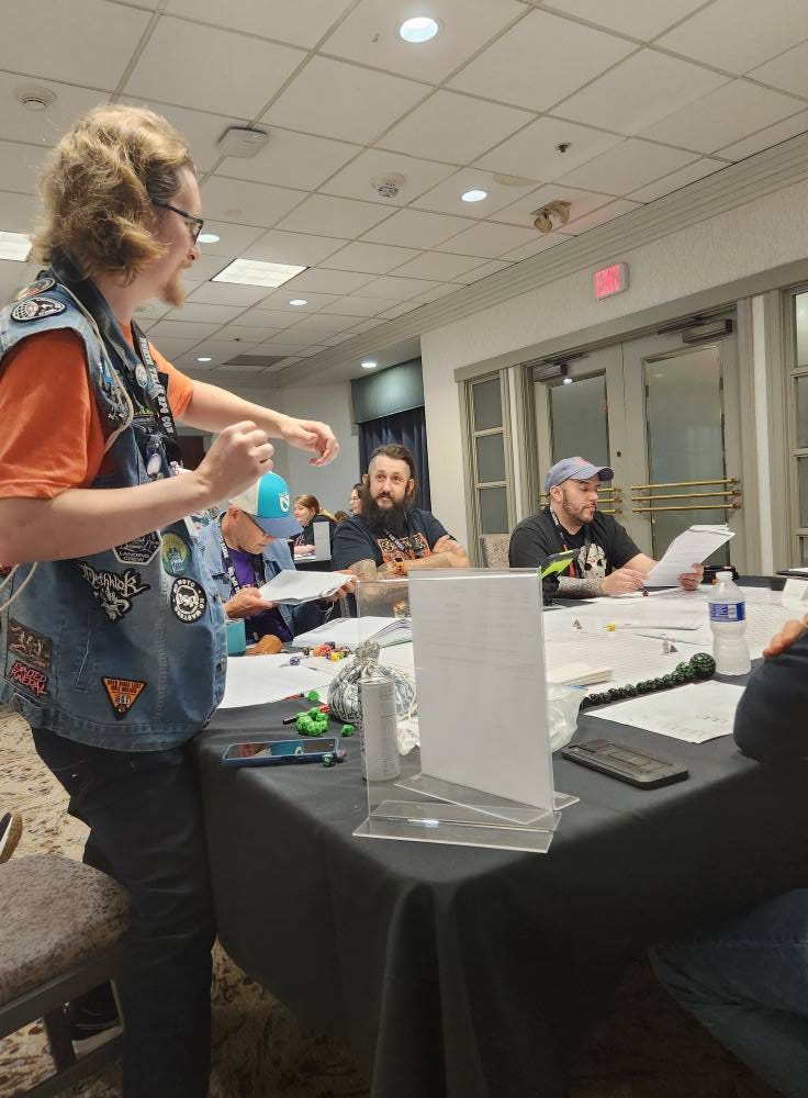 After that, it was time to hang out again. I basically chatted with folks like Dave Baity and Julian Bernick until I needed to drive home before I started falling asleep. There was talk of writing adventures for other folks, artists that we like using, and brainstorming future adventures for Dungeon Dwelling Creatures and WHPA. Plus, I was able to show off some of the Lulu PoD copies of The Conquest of Chaos (bought just so I could double-check my own layout work before the print run) to folks, including some playtesters! I was stoked to hear how the art pieces matched so many of the memorable moments that occurred during our adventures together.