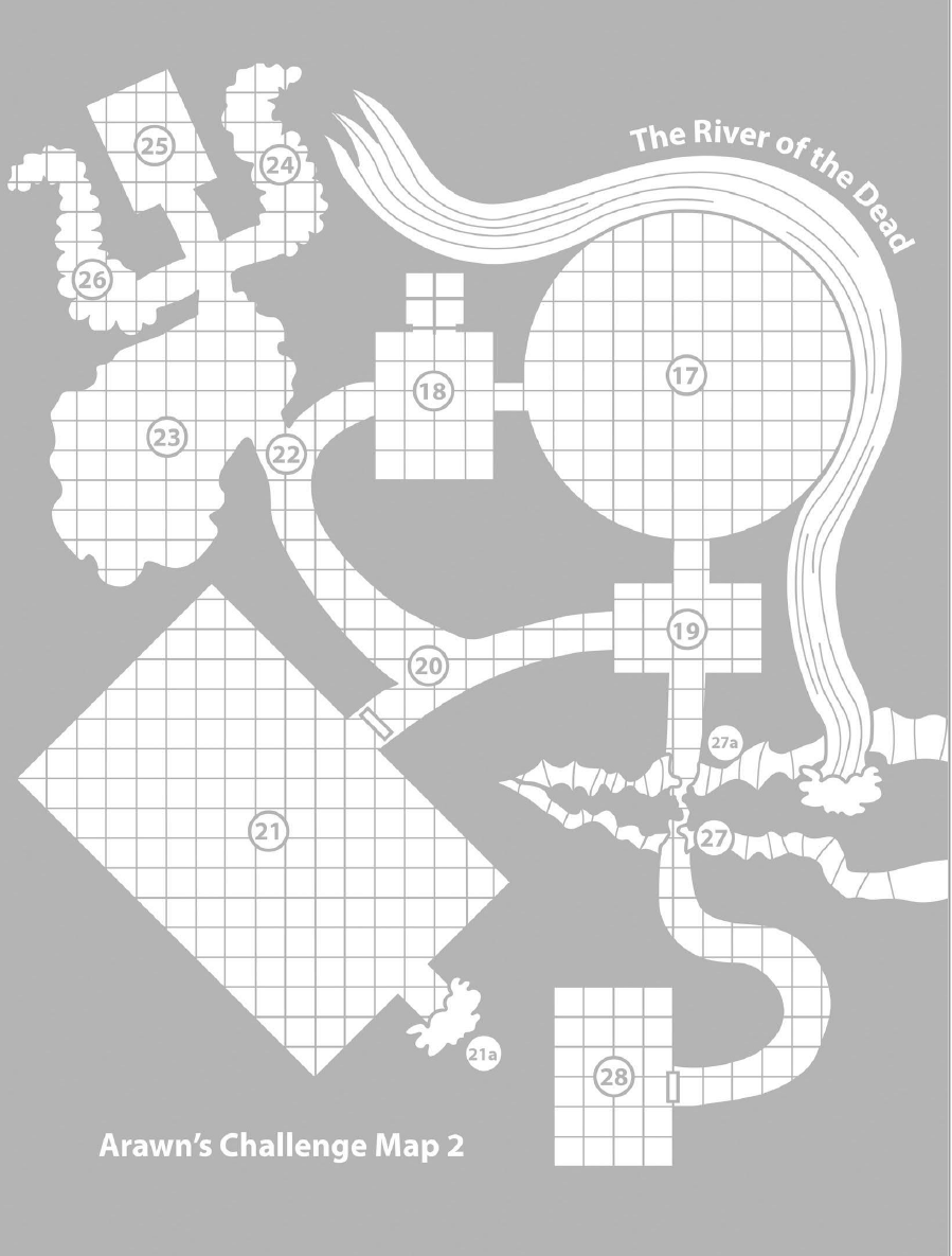 My favorite rooms from here on out are the Feast of the Dead and the Rulers of the Dead. I always love an opportunity for the PCs to eat something gross. Most of the feast food is terrible but a few items are actually beneficial. Meanwhile, the rulers of the dead sit in silence, beckoning a PC to sit upon the ninth throne and take the crown. If someone does so, they become the Ninth Ruler of the Dead, which grants them great power but also responsibility.