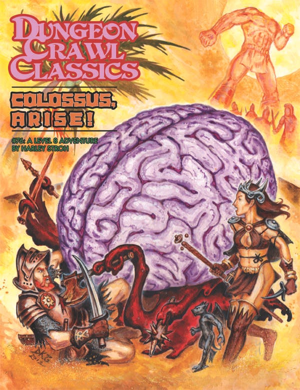 Colossus Arise is currently the highest level DCC module published by Goodman Games. It’s the only level 8 adventure, and unless you want to count Crypt of the Devil Lich (which you may not since its a tournament style adventure), there’s not even a level 7 adventure! Since The 10th Doomstar is about to crowdfund, I thought that I’d like to take some time to officially review Colossus Arise. I’ve run it twice so I certainly have some opinions. But I will keep keep you holding on with baited breath: it’s pretty dang good! I wouldn’t have run it a second time if I didn’t like it! Spoilers ahead, fellow judges!