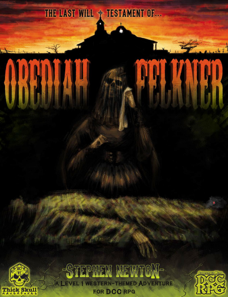 The Last Will and Testament of Obediah Felkner is written by Stephen Newton under Thick Skull Adventures and totals up to 34 pages. It’s technically written for DCC, but was written with Weird Frontiers in mind. It references Dark Trails (the original working title for Weird Frontiers) but also that you can use the Black Powder, Black Magic zines for a true weird west game. Keep in mind that this was released in 2020 so Weird Frontiers had yet to be published. I was lucky enough to play this adventure during the first Cyclops Con and had Stephen newton as the judge!