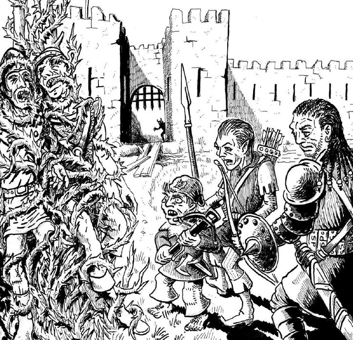 Staying above ground for a bit longer, the Rumley House has a main floor, upstairs, and basement to explore. Plus, some more hillfolk who do their best to ambush the PCs. This is my “beastman tower”. Upstairs, you have the creepy living quarters of the hillfolk, an opportunity to learn that one of them has a bounty on his head, and a spot where some classes can use their “speak with dead” ability to great effect (a.k.a, a chance for Sin Eaters and Calaveras to shine). The main floor’s most memorable location is a grotesque table centerpiece, made from amputated arms. Each hand holds a “black egg”, which PCs may be compelled to eat in the right situation. This is a wonderfully disgusting moment that is super memorable. Down in the basement, its basically that scene from The Road where the Father goes down into a basement and finds some prisoners. I’ll refrain from describing it further, as its very dark. A connecting tunnel leads to a trapped room (hey, I need a regular trap) that contains all the possessions of the hillfolk’s many victims. But if you go through all this, you can bypass the largest group of hillfolk and can head straight to the “boss”.