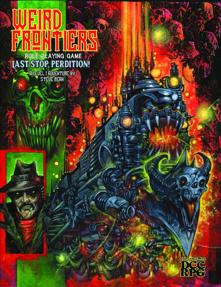 I mean, I backed the Kickstarter to get the cover art which now hangs on my wall! This is one big adventure set upon the train to Hell! It's about 50-ish pages of adventure, plus it contains the first new official character class for Weird Frontiers: the Void Ranger.