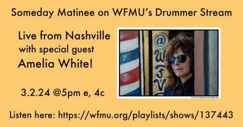 Amelia White is coming in to talk about her great new Love I Swore album, which was produced by Kim Richie….and she’ll play some songs for us!