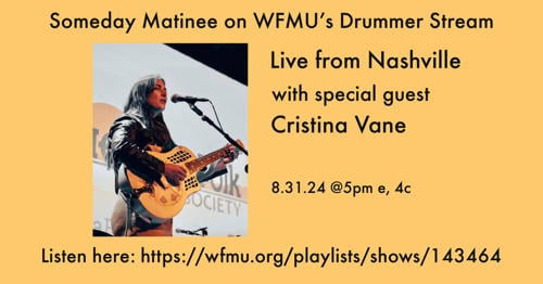 Cristina Vane spent her childhood in England, France and Italy before moving to the States, and landed in Nashville after time spent in L.A. and five months on the road. Her rootsy bluesy fingerpicking sound is unique, and I’m so happy she’ll be joining me to play some songs, talk about all that and her new album Make Myself Me Again.