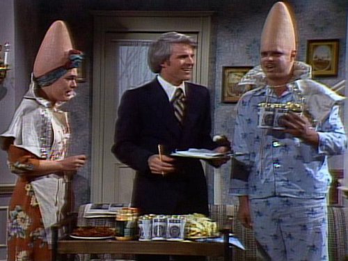 The Coneheads did well in their first sketch so they were bumped up to the first half hour. If they scored before, they absolutely kill here.
