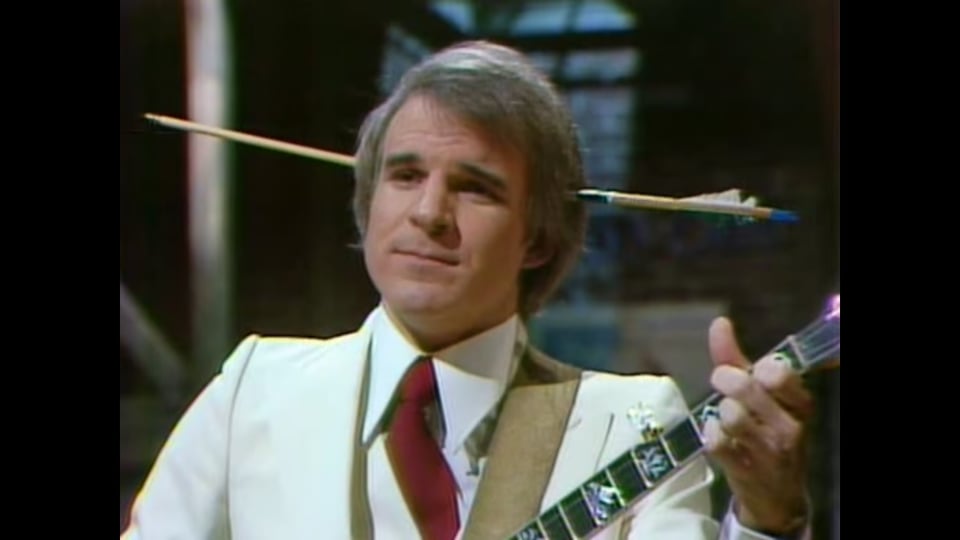 Steve Martin’s second episode as host, like a previous Elliott Gould-hosted episode, begins with Gilda Radner nervously approaching a host she presumably has recently slept with.