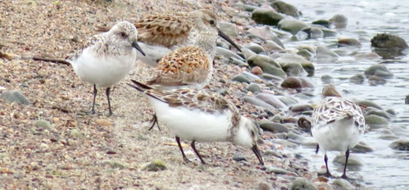 The sandy shore of Point au Sable [Sand Point] has brought me many interesting discoveries - one large flock of Marbled Godwits, the largest of our shore birds, an occasional Piping Plover [amazing!], the loveliest of that family in my opinion, many Ruddy Turnstones and Sanderlings, both formerly rare in Minnesota, but now regular spring and late summer migrants and … a single Western Snowy Plover, a bird of the Pacific coast of which there had been no previous record in Minnesota. That was an exciting experience…. As no specimens were taken, ornithologists are usually loath to admit the identity of a bird so rare in the locality through sight identification alone, but Dr. Thomas S. Roberts in his book “Minnesota Birds” included this report of mine as “no doubt true.”