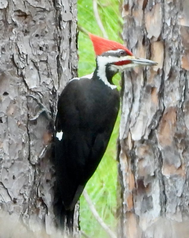 The splendid Pileated Woodpecker, once rare, is now a regular inhabitant of the deep woods, easily recognizable by its loud rattling call, which can be heard at a great distance.