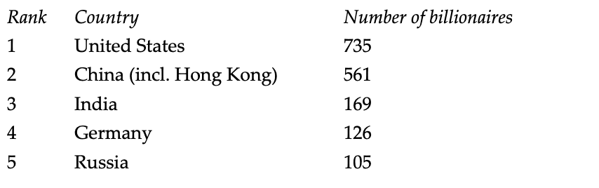 Table 4. Top 5 Countries of the Forbes Billionaires 2023 List30
