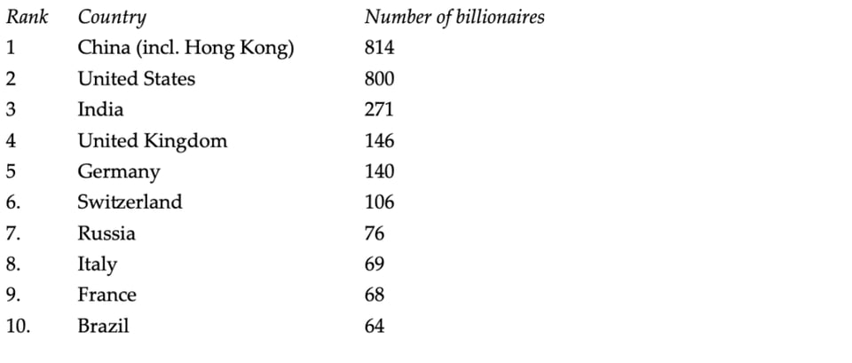 Table 5. Top 10 Countries of the Hurun Global Rich List 202431