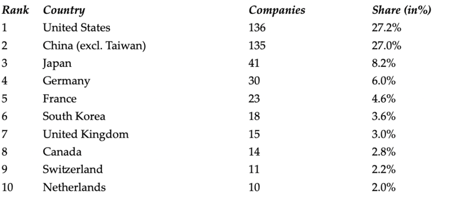 Table 3. Top 10 Countries with the Ranking of Fortune Global 500 Companies (2023)29
