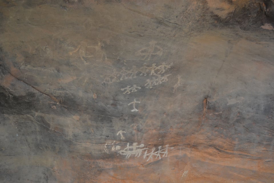There’s hundreds of rock shelters, only really known by modern archaeologists in their scale of time and space in the last fifty years. There’s evidence in some of the caves of occupation for thousands of years, and people continued coming back to the site while soldiers rode elephants and horses, all dated by various artefacts and paint pigments.