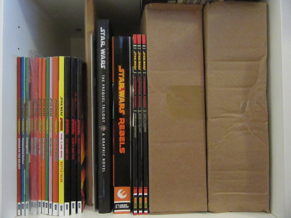 I suppose if I’d actually arranged the shelf chronologically, that Clone Wars series would come first!