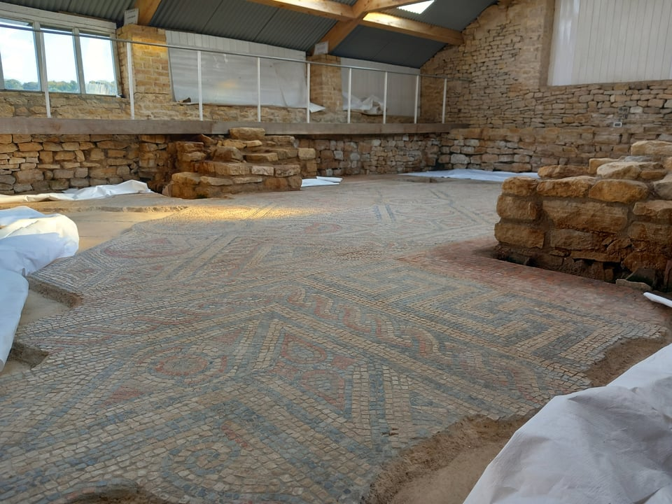 More recent excavations and conservation work have also properly examined and reburied one wing and future-proofed the roof over the mosaic and two wings left uncovered, as well as yielding interesting finds like a whole forger’s kit hidden in the remodelled baths and quarries in the hills.