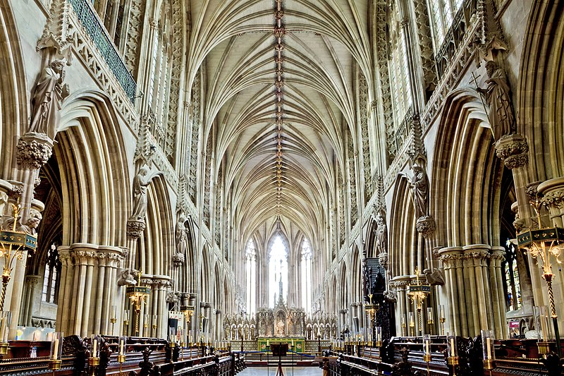 Having grown up in the area and lived in the city for over 25 years, my choice is Lichfield Cathedral. One of only 3 three-spired cathedrals in the UK, and the only one built during the medieval era, it's the third cathedral to be built on the site, the current one having stood since the early 1300's. The history of the cathedral is long and storied, at various times coming under the umbrella of the catholic church to its current Church of England denomination. Much of it was destroyed during the English Civil War between 1643–1646, when Cathedral Close was surrounded by a moat, and it took over 100 years to rebuild the shattered spires. It's a fascinating place to visit, peaceful and inspiring (and a great venue for music concerts, which the cathedral often hosts). Highly recommended to anyone in the Staffordshire area.