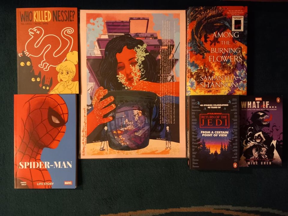 Here’s my MCM new stuff haul. I’ve been waiting to grab Rachael Smith and Paul Cornell’s Who Killed Nessie? and after learning about (and selling out of it!) at the Panini booth, I couldn’t resist Spider-Man Life Story to get signed by Chip Zdarsky!