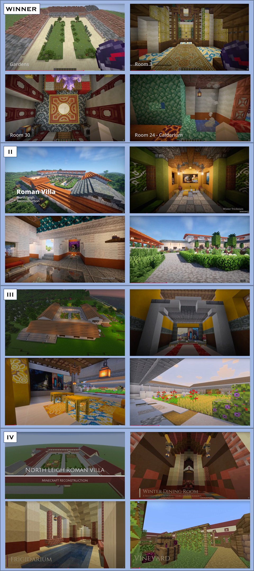 I also collaborated with Blenheim Palace on a press release for our North Leigh Roman Villa Minecraft Reconstruction Competition. The winner’s been announced, and here’s some screenshots from our top four entries: