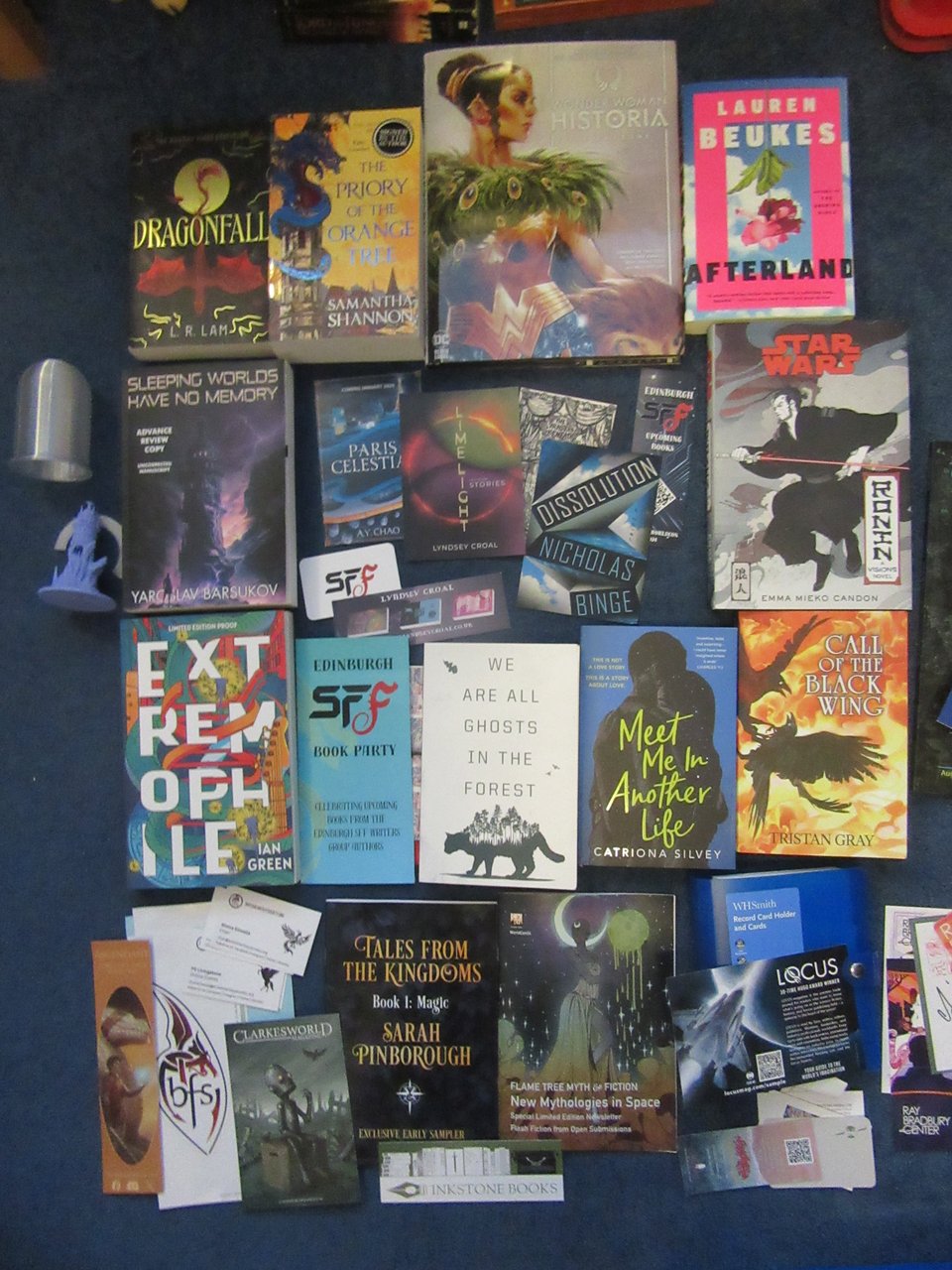 This is all the books and related loot/goodies/freebies from Wolrdcon. Samantha Shannon wasn’t down for a signing so I picked up a signed copy of her book in Waterstones on the way to the con - and managed to get it personalised. I also bought that copy of Historia, the Hugo nominated comic, as I knew after reading the voter’s PDF I wanted the beautiful story in physical. I passed by Tristan’s stall after seeing him at Edinburgh SFF’s party, and when I saw his writing was about early medieval Scotland, somewhere I hope to explore in my fiction, I couldn’t resist a copy.