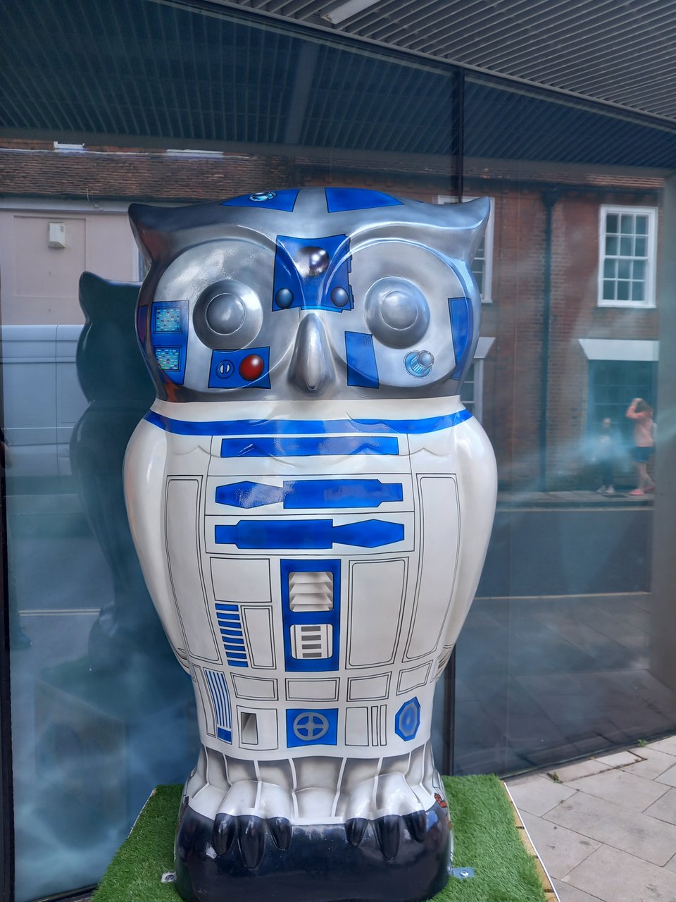 From Star Wars to Star Wars, it seems. There were loads of owls around Chichester, including a Minnerva Roman one and one covered in handprints, but I feel like this guy deserves to make the cut above the others. RHoot-DHoot?