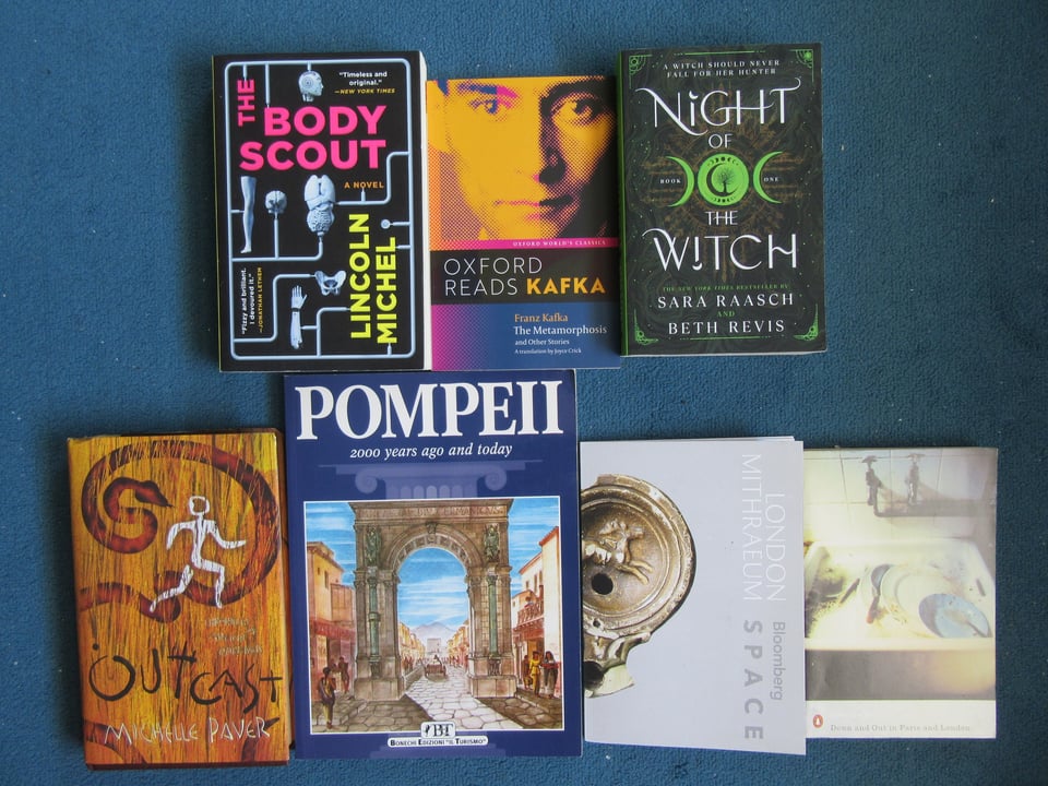 Here’s some non-Star Wars stuff. Lincoln Michelle runs a great craft newsletter, so when I saw his highly-praised debut sci-fi novel in Oxford I couldn’t resist. That Kafka was free with an exhibition around his life and works in the Weston Library. Beth Revis’s newsletter is another you should subscribe to, with the potential for freebies! And because she supported my Insider announcement. I can’t wait to launch into her book set in medieval Trier, a city I’ve visited and written about too! The bottom row’s a series of books my parents got me, an interesting prehistoric book, a great one on Pompeii, the latest edition of the London Mithraeum’s guide with new artwork and some Orwell.