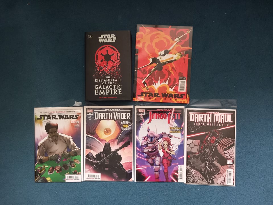 When I returned home from London on the 4th with my copy of Insider #226 (top right), I was greeted with two other deliveries. There’s the usual monthly comics, the two mini series on the right and the main Star Wars and Darth Vader which are coming to an end soon with issue 50s. And my copy of Chris Kempshall’s book arrived! A very Star Wars day, to rival the 4th two months before.