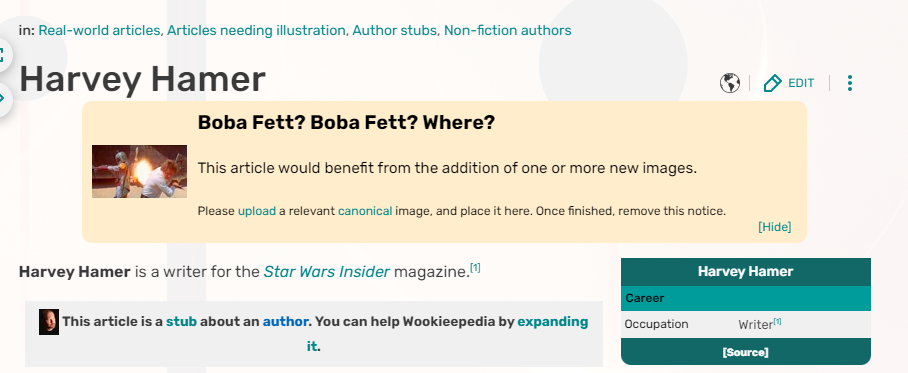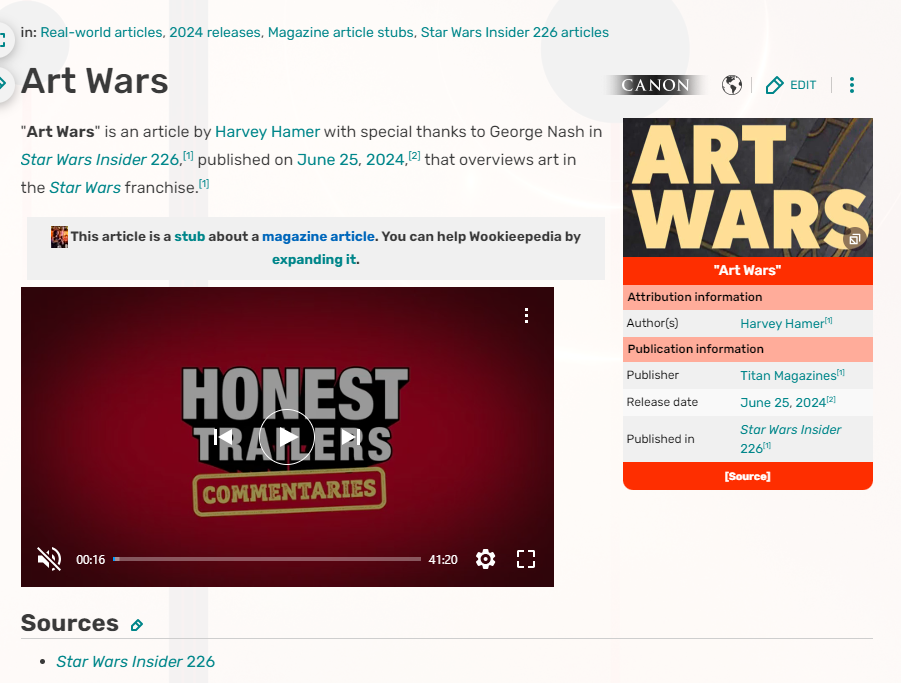 Plus my article and I now have our own pages on Wookieepedia (the massive Star Wars Wikipedia) which is pretty surreal!!!