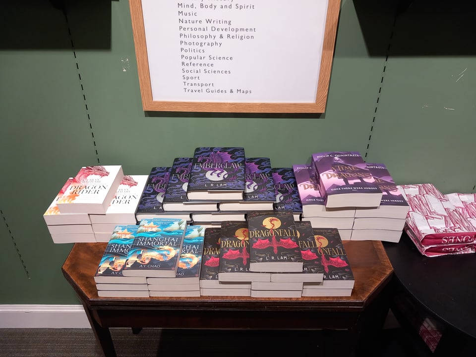 As mentioned last time, I spent the last evening of March at Waterstones Covent Garden for L.R. Lam, A.Y. Chao, Taran Matharu and Philip C. Quaintrell in conversation, discussing all things dragon!