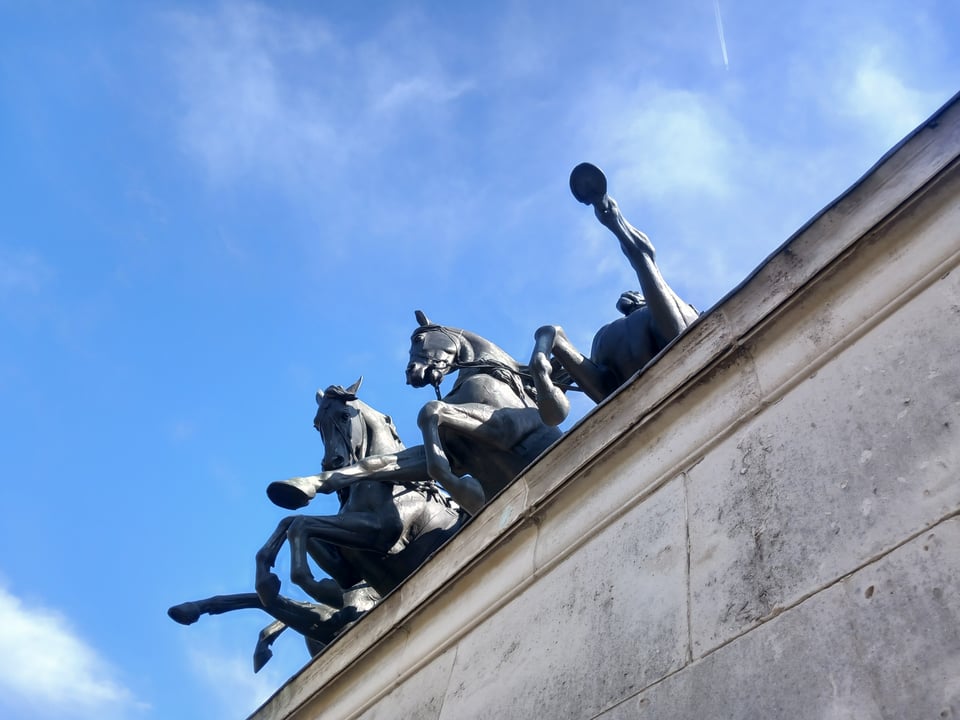 My first day out in April was another London trip. With my English Heritage volunteer pass, I scaled the great little Wellington Arch site. The exhibitions on the different levels inside are worthwhile, but the view from the top is the best, as is looking back overhead: