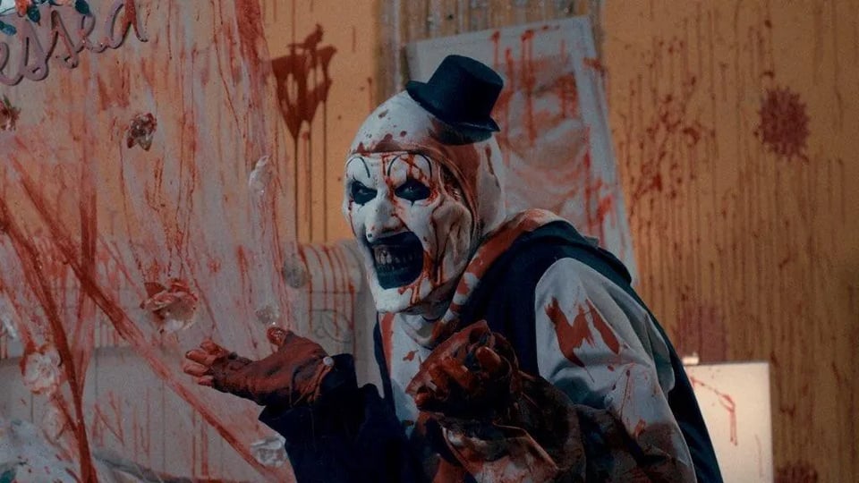 Chaw’s review is an excellent sum of Art as a character, even if I find it flattens him in some ways. Equal parts slasher mascot and Bugs Bunny-style trickster, Art the Clown is a sadist who constantly seeks to create the most theatrical of kills, turning back and winking at the audience and treating each kill as its own series of specialized gags. Terrifying and upsetting as it is, the moment in the first film when seemingly-Final Girl Tara Heyes is absolutely beating his ass, only for him to whip out a gun and instantly end the fight carries massive punchline energy. As a slasher villain, Art relishes violence more than any other of his ilk. Michael is cold and deliberate, Jason is unthinking and brutish, Freddy is intensely creative above all, and Leatherface has anxiety. Art perhaps most closely follows in the line of Giallo killers with his sadism, though he far surpasses them in eclecticism of kill styles. The leering and gory gaze of Lucio Fulci’s camera, showing off the most disgusting images imaginable at the time, seems to almost be his baseline, committing The Worst He Can Think Of and laughing at his handiwork – all the while challenging us to laugh with him. If Freddy’s show is an act for his victims, Art is doubtless putting on the show for us.