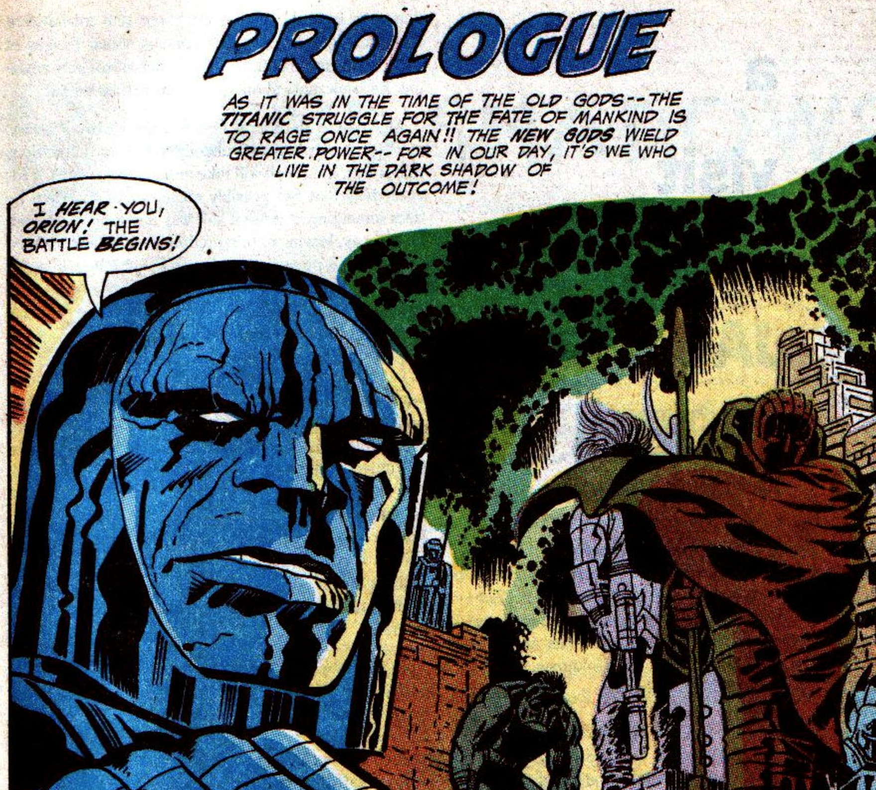 Somewhere. out there on Earth, Darkseid responds; ‘I hear you, Orion! The battle begins!’