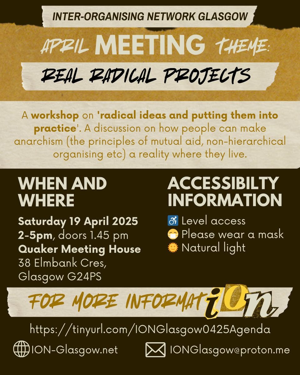 Just a wee reminder that the next public ION Glasgow meeting is tomorrow, Saturday, April 19th, 2-5pm at the Quaker Meeting House!