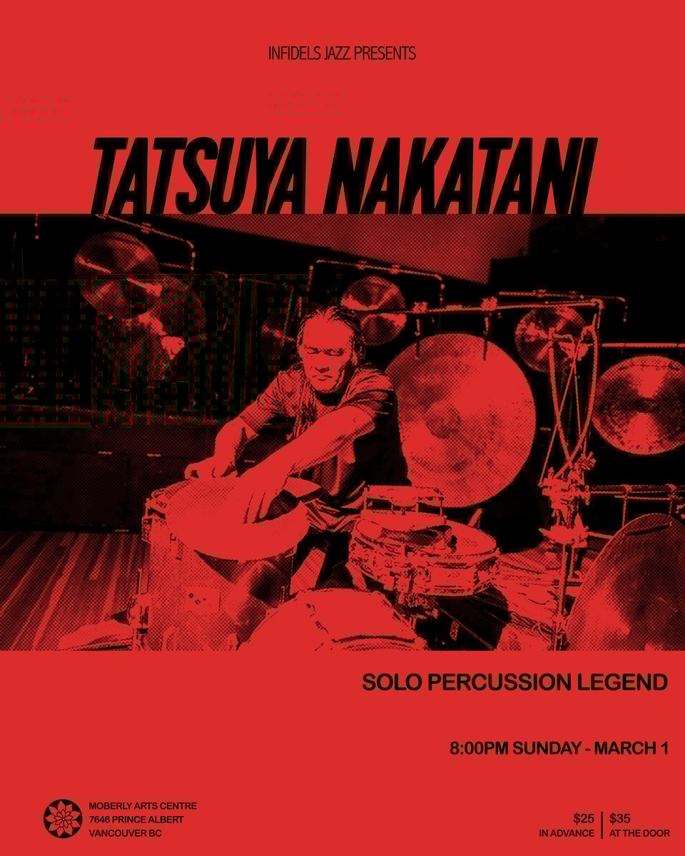 Legendary Japanese percussionist Tatsuya Nakatani travels the world in his van, bringing his solo performances to everyone he can. He'll be returning to Vancouver on March 01, at the Moberly Arts Centre.