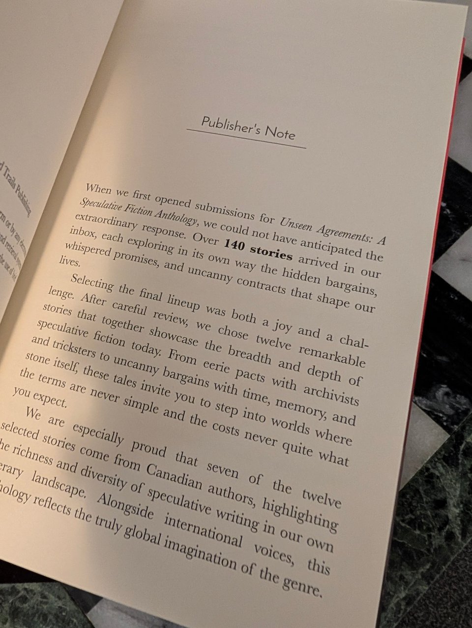 I received an annoucement this morning that Unseen Agreements is now available (Canadian orders) (or here for US Amazon link).