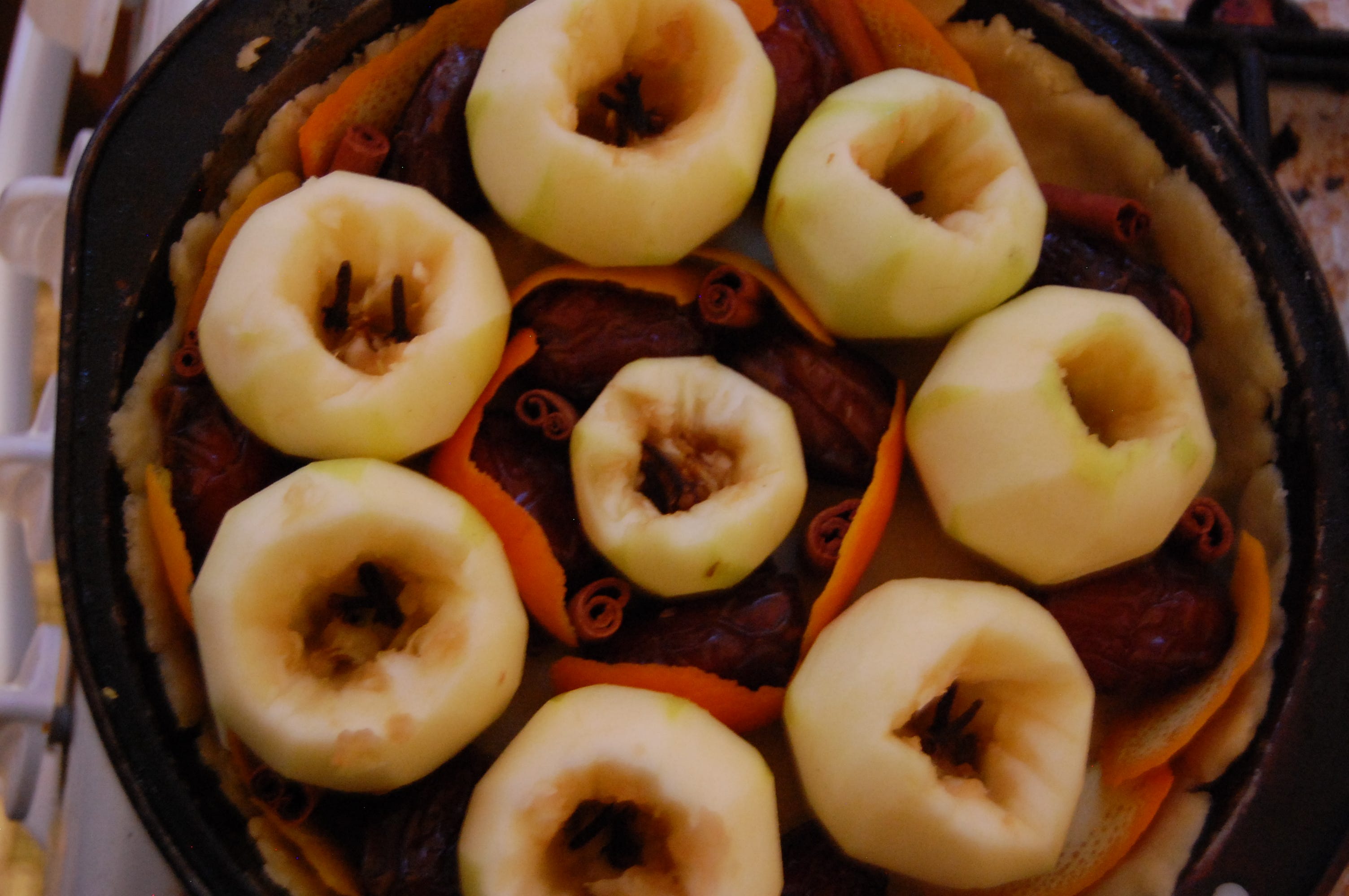 8. Put two cloves in each cored apple. Arrange in the crust.