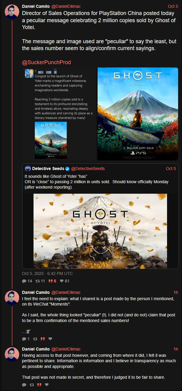 Deux millions de copies vendues ou presque pour Ghost Of Yotei :