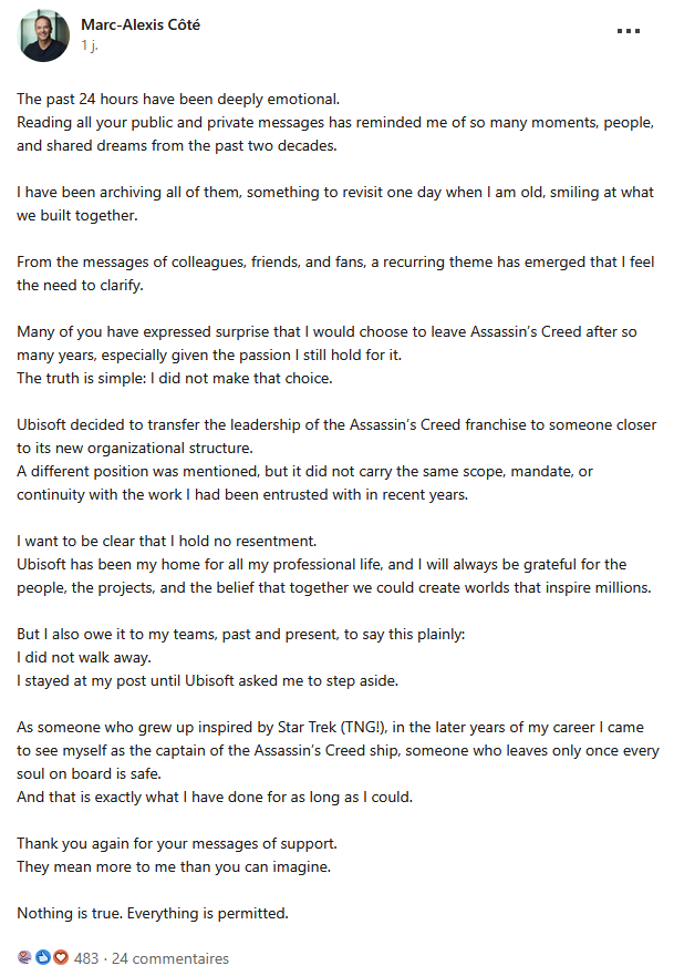 J’écris une revue de presse journalière sur l’actu des jeux vidéo et un peu de tech. Des fois, je fais des fautes. Je me plante aussi parfois. Je ne suis aucunement journaliste. Si vous voulez un avis éclairé sur un jeu, lisez Canard PC. Ou Origami.
