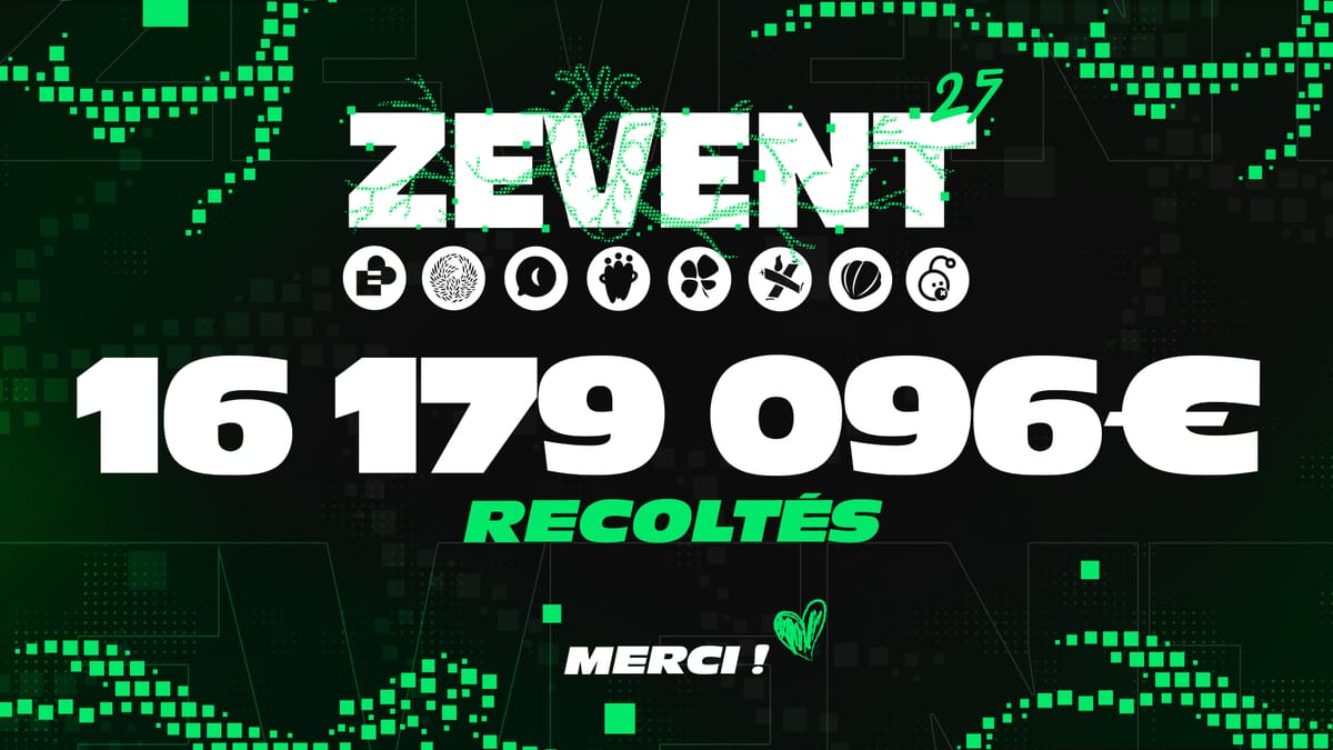 Le ZEvent 2025 s’est achevé dans la nuit du 7 au 8 septembre et signe une édition record. Le marathon caritatif conçu par ZeratoR (Adrien Nougaret) et Dach (Alexandre Dachary) a récolté 16 179 096 euros au profit de plusieurs associations, battant largement la barre précédente de 2022 (10,