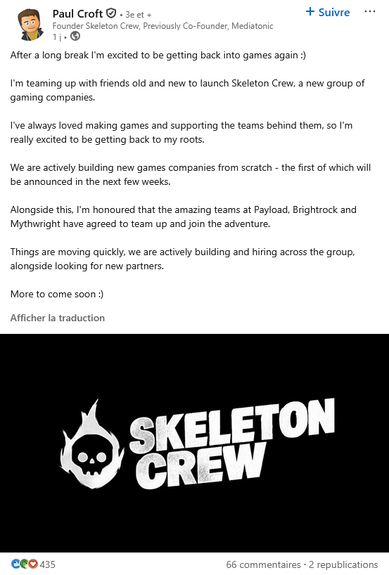 Le groupe d’entreprises du jeu vidéo Skeleton Crew a été créé :