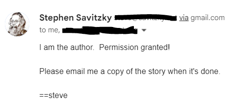 I've also been busy working on an additional collection of short stories including one where I incorporated parts of the filk song Rocket Rider's Prayer because I just think it's a cool song. I did want to credit the author of the song properly and I managed to track down someone credited as the author and sent him a quick email.