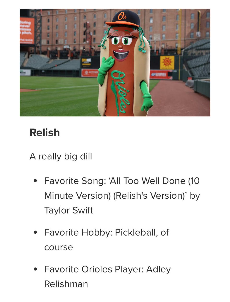 The thing about me is that I love a novelty. A human in a hot dog costume is up my alley (down my baseline?) After long seasons of digitally animated condiments Major and Minor League Baseball are back to putting underpaid employees into colored foam and making them run! This summer I cheered so fervently for relish (a condiment I do not like) at a Cyclones game that I lost my voice. It was worth it. Relish won. Relish never wins. She's often the Teddy Roosevelt of condiments. (That's a call forward, you're welcome.) Shout out to the Brooklyn Cyclones Surf Squad members who continuously ran for relish — and whoever ran in Camden Yards, too. (For one game in June, co-owner Mike Arougheti raced with his sons.)
