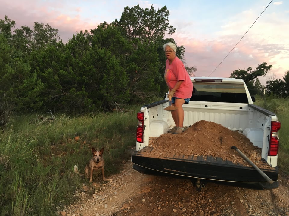 After the terrible Hill Country flooding in July, we had it easy. We were safe along with our home and animals - so many friends were repairing fences, digging out sunken vehicles, slogging through the nightmare of home insurance claims, or at worst mourning the loss of animal and human companions. The relatively small problem we faced was that the long dirt road leading to our house was badly washed out. During the week of rain that began July 3, about 15 inches of water dug two impressive streams down the gradual slope that bends to a curve at the bottom of our hill. Just a few days of pricing road repair convinced us to try fixing the road ourselves.