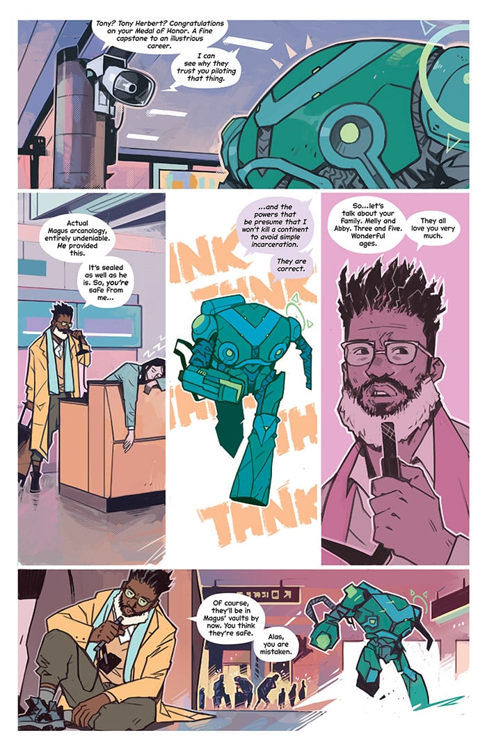 The Power Fantasy #4 drops next week. Here's a quick two page teaser, from early in the issue. We didn't want to give away the opening.