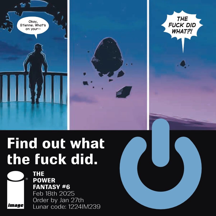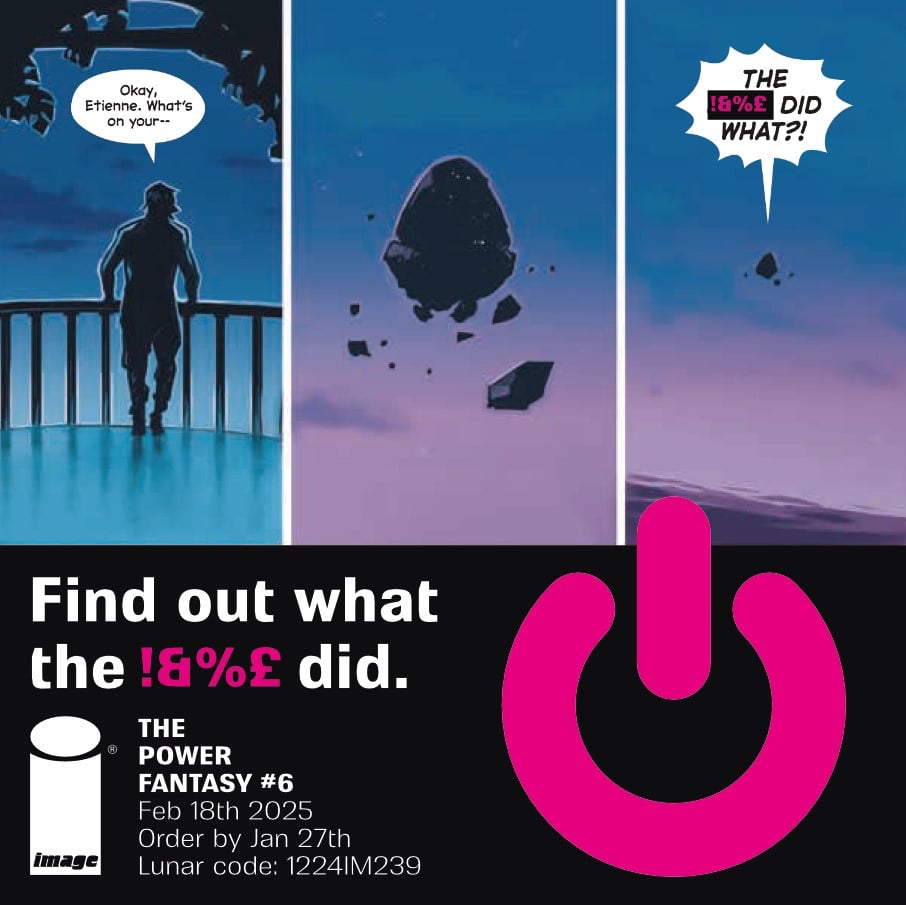 The Power Fantasy's trade starts appearing in shops next week, but single-issue comics marches on. The order cut off for issue 6 is on Monday 28th. And we've done a teaser.