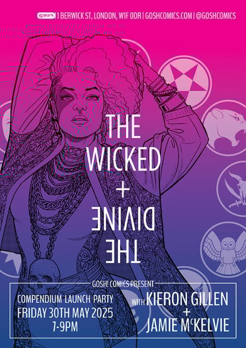 In the Bindings above, you may have spotted something new. Namely, the cover of The Wicked + the Divine compendium which is coming out in comic shops at the end of the month. We’ve talked to our friends at GOSH and we’re having a launch party on Friday 30th May at 7pm. GOSH will have an exclusive bookplate too.