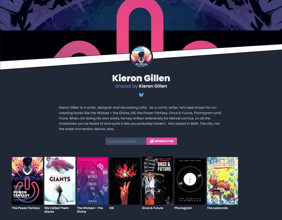Basically, you can go to this shelf, look at my books (no matter what publisher they’re from), discover what they’re like and then get links to go and buy them. And it’s entirely flexible – I’ll likely be making some of these more elaborate (Phonogram and Ludocrats are the most minimalistic) and adding sections for some of my Work-For-Hire books too.