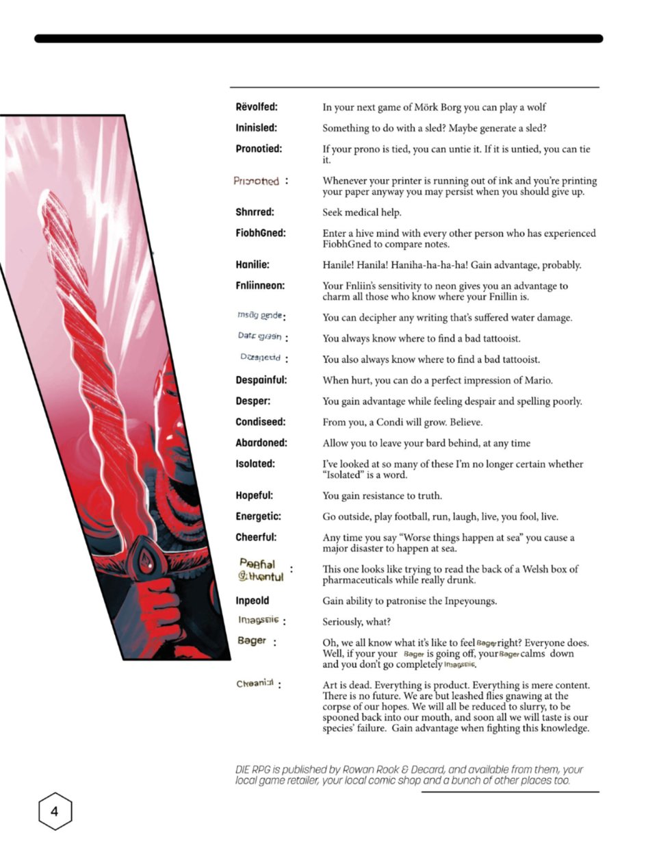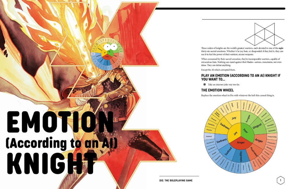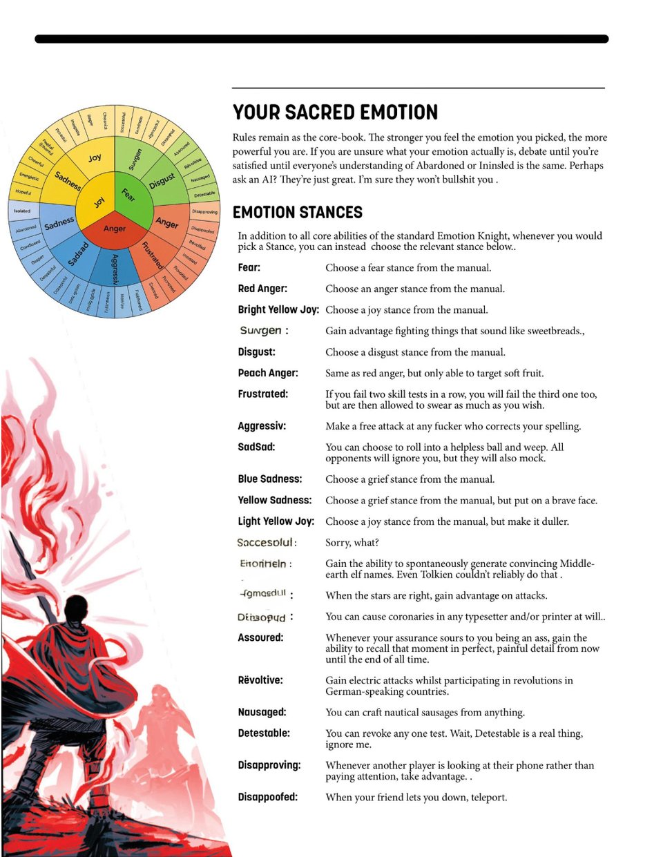 Talking about that, there was a thing going around the socials of a berserk emotion wheel, with an AI making up emotions that sounded like something Lovecraft squeezed out. I had a bunch of people tag me, joking that it should make it into a DIE expansion.