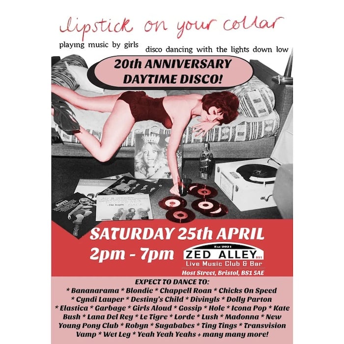 It’s a daytime club to mark the 20th anniversary of Lipstick On Your Collar.