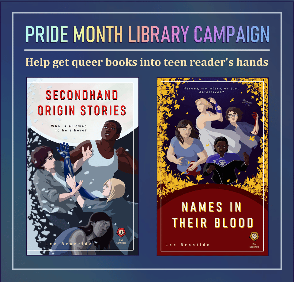 Before I get started, my ask this month is still brief and free, but a little bit more personal. It’s still the final day of Pride month, and so I am asking everyone I can to consider requesting that their local library carry my books. I’ve added them to the market that most US libraries buy from, and even gussied the files up a bit.