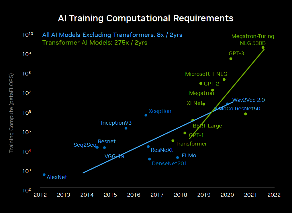 Nvidia prévoit dans son rapport aux investisseurs de multiplier sa puissance globale de 275 tous les 2 ans contre 8 depuis 10 ans.